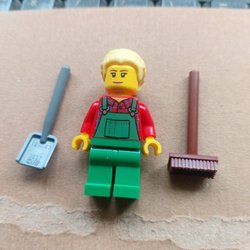lego neue Figur Mädchen Frau Dame blond Bauer Hausmeister Gärtner