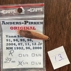 Anders-Pirken Original, 39mm., S/G, Geriffelt, Wolfram, Pirk, Pirkar, Eisfischen