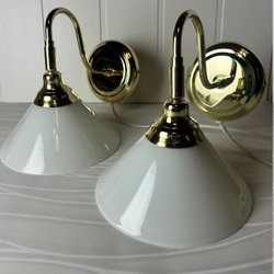 2 WANDLAMPEN - SKOMAKARLAMPA - MESSING UND GLAS