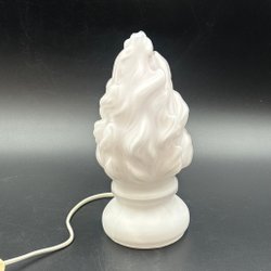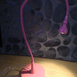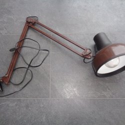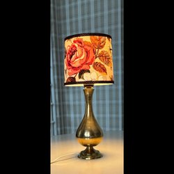 Funktionierende Retro-Tischlampe aus den 1960er Jahren mit Fuß aus Teakholz und Textilschirm H 30 cm