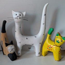 Keramikfiguriner är som små konstverk - omsorgsfullt formade och målade för att förmedla känslor och berätta en historia. Dessa charmiga skapelser kan vara allt från söta djurfigurer till eleganta mänskliga porträtt. Med sina färgglada mönster och levande detaljer tillför de en lekfull och unik touch till ditt hem.