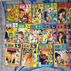 Dyk ner i en värld av hemliga uppdrag, farliga skurkar och oförglömliga äventyr med Agent X9 serietidningar. Sedan dess debut har Agent X9 varit i framkant av spännings- och äventyrsgenren, och skapat en stark följarskara av hängivna läsare genom åren. Med dess fängslande berättelser och levande illustrationer har Agent X9 blivit mer än bara en serietidning – den är en institution inom agentgenren. Varje upplaga erbjuder läsaren en biljett till en värld av internationellt spionage, där varje sida överskrider den nästa i spänning. Agent X9 har gett oss många minnesvärda stunder genom klassiska titlar som "De förrädiska diamanterna" och "Jakten på den försvunna skatten". Dessa tidningar, rika på action och intriger, har gjort Agent X9 till en av de mest älskade serietidningarna genom tiderna. Med en perfekt blandning av spänning, drama och äventyr har Agent X9 alltid lyckats hålla sina läsare på tåspetsarna, ivriga att veta vad som kommer härnäst.