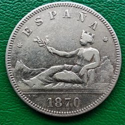 - Silver peseta-mynt från 1800-talet, när Spanien såg några av sina mest turbulenta tider.