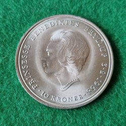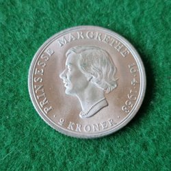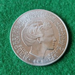 • Margrethe II: nutida mynt med Danmarks nuvarande drottning.