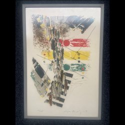 BJÖRN STÖLLING, DER FLUG DER GEISTER, ABMESSUNGEN 55,5 x 44,5 CM INKLUSIVE FEINEM GLASIERTEN RAHMEN.