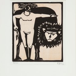 Samson und der Löwe - Åke Holm - Holzschnitt