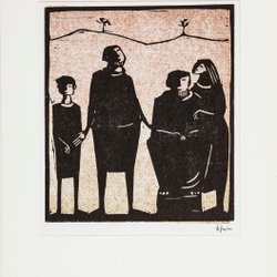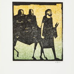 Laban und seine Töchter - Åke Holm - Holzschnitt