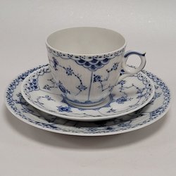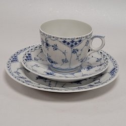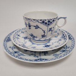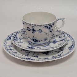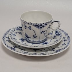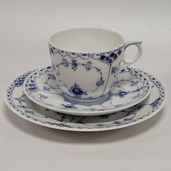 1 Set - Kaffeetasse - Untertasse - Teller - "Musselmalet" - Royal Copenhagen - Halvblond