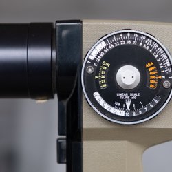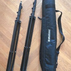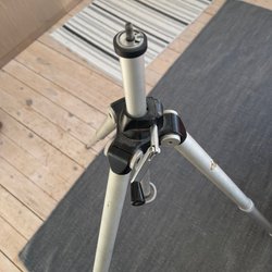 Kamerastativ aus Metall mit verstellbarer Höhe und einem Griff, der um 360 Grad gedreht werden kann.