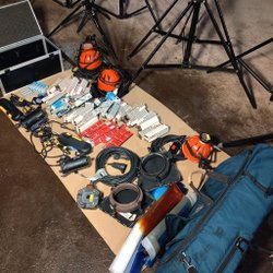 - Olika typer av studiobelysning, från softboxar till spotlights
