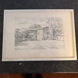 Gerahmte Tafeln mit Zeichnungen oder Lithografien
