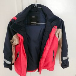 Didriksons rote, beige und marineblaue Jacke, Größe 120