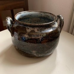 Glasierte KRUGE Keramik, signiert M80 Braun/Schwarz/Grau