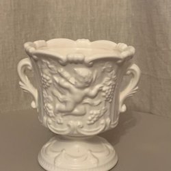 Kleine Kanne/Kelch mit Ohren, Retro, weiß, Schild: Foreign, Motiv: Cupido/Engel