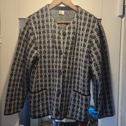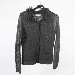 Strickjacke mit Fransen, Größe S, Jacke, schwarz, gestricktes Baumwollmuster, modisches Trend-Design