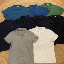 Identisch – Frisches graues Poloshirt mit schwarzen, roten und weißen Streifen, schwarzem Kragen – M