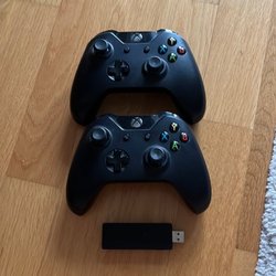 Två Xbox One-kontroller med trådlös adapter