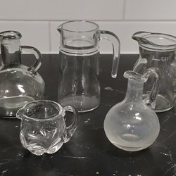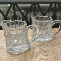 Ein paar kleine Kannen aus Pressglas. Für Milch oder Teelichter.