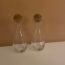 Fünf kleine Glaskrüge für Öl und Essig
