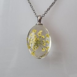 Halskette mit ovalem Glasanhänger (50 cm lange Kette) - Gelb