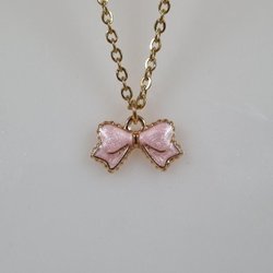 Halskette (45 cm) aus Edelstahl mit süßem Anhänger - Rosa Schleife