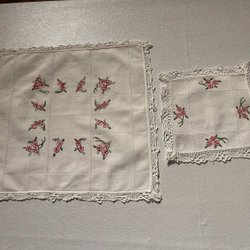 3 kleine Tischdecken + 1 Taschentuchtasche