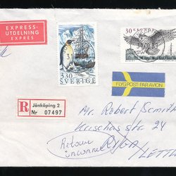 Beautiful EXPRESS/REK Envelope to LETTLAND. Return addr. JÖNKÖPING 2.
