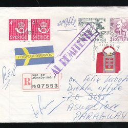 Beautiful REK-REK Shipment to URUGUAY stpl. JÖNKÖPING 2. RETUR AVS: