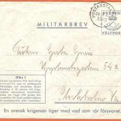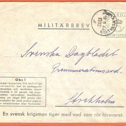 Military letter POSTANSTALTEN 1163 A 1.2.43 Axvall