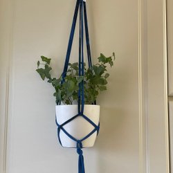 Dark blue hanging planter, macrame (13-15 cm)