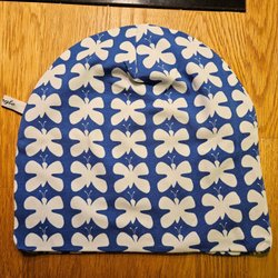 Blue hat with white butterflies