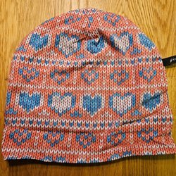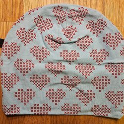 Hat with printed knitted hearts