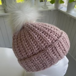 H&M pink winter hat, size 86