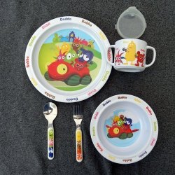 Babblarna plates, sippy cup and cutlery