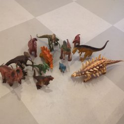 Julklapp! A larger collection of dinosaurs in mint condition with food + 2 books