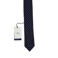 Tie 60s Design Atelje Navy Blue Stripes Light Blue and White L 138.5 cm W 8 cm