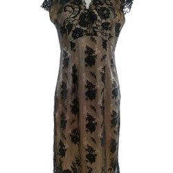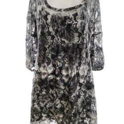 Black size 14 (42) Knee Length A-Line Dress 3/4 Sleeve Lace Embroidery Ok...