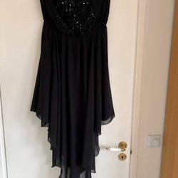 Asymmetric lined black dress without sleeves with elastic, sequins, size 40 Party