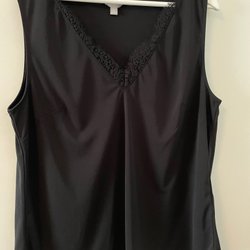 H&M black sleeveless blouse with lace trim, size L