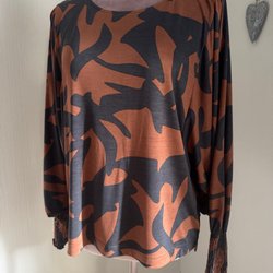 House of Lola brown, grey blouse, size M