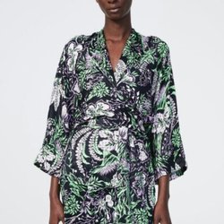MANGO, MNG, V-neck green wrap blouse/top, size M