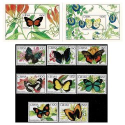 GHANA 1990 Mi 1354-1361 + BL 153-154 FJÄRILAR STAMP SET + 2 x MINIATURE SHEETS