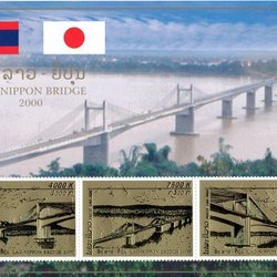 LAOS 2000 Mi BL 180A BRIDGE OVER MEKONG RIVER GOLD MINIARK