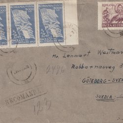 Rek Brev från Rumänien Stpl 10/11 - 1947 Sänt till Sverige