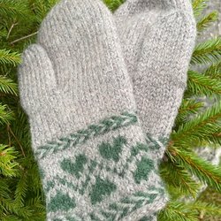 Hand-knitted wool mittens with pattern