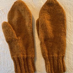 Rust-brown, hand-knitted mittens