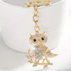 A luxurious key ring of gold-colored metal and rhinestones with an Owl!
