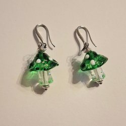silver earrings with glass beads mushrooms