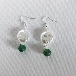Elegant earrings with white and green pearls
