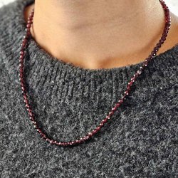 Granat, halsband 4mm facetterade pärlor 925s.